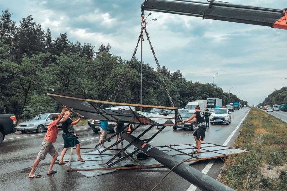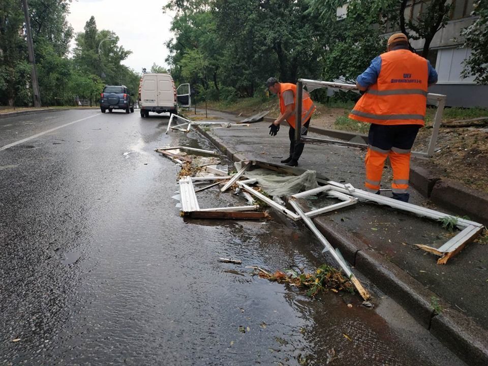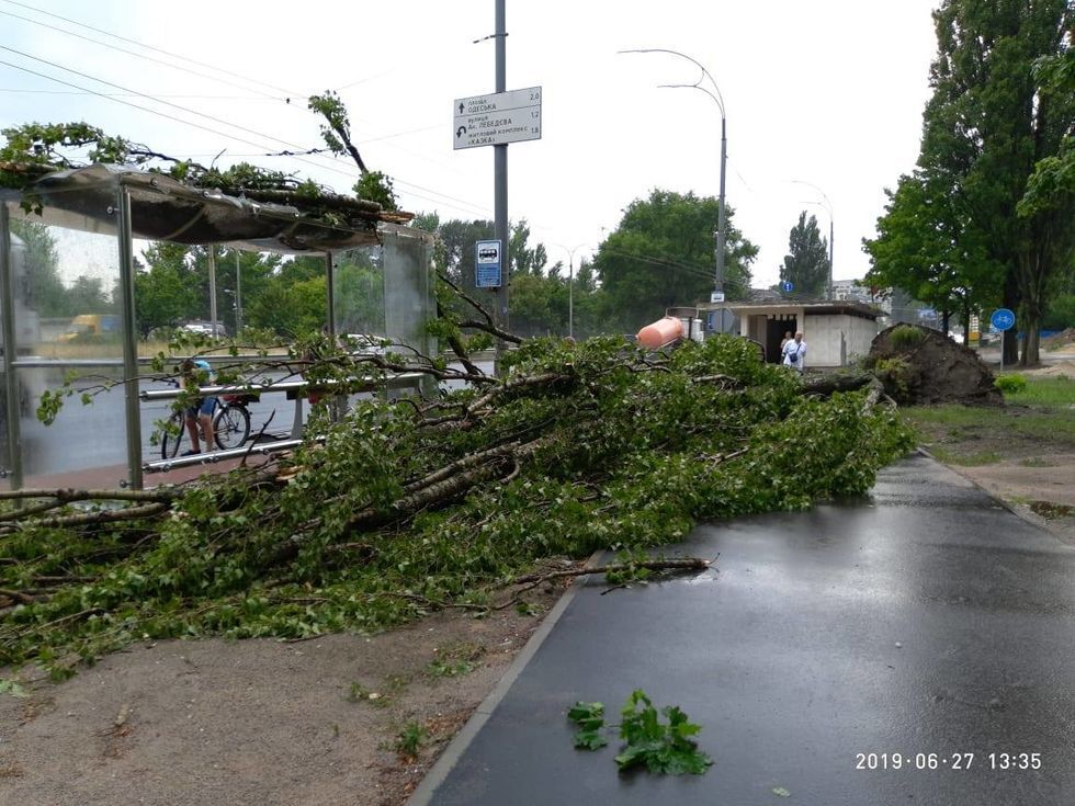 27 червня в Києві була гроза, град і пориви вітру до 28 метрів на секунду. Унаслідок негоди у столиці повалило дерева, а також знесло 100 метрів даху міської клінічної психоневрологічної лікарні на вулиці Миропільській, повідомили в Київській міськдержадміністрації. "Информатор" розповів про білборд, що впав на трасі Київ – Бровари, конструкція пошкодила автомобіль, який проїжджав повз.