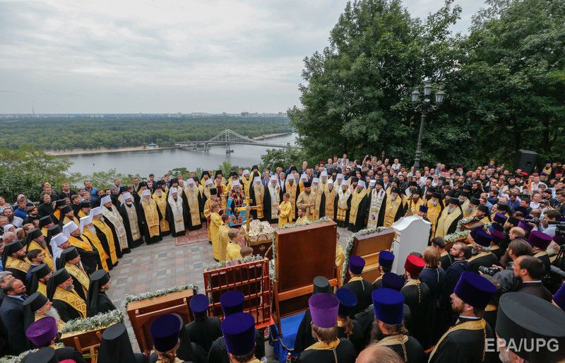 На заходах у Києві, присвячених 1029-й річниці хрещення Київської Русі, брали участь 15 тис. вірян. Про це повідомляє поліція Києва. Після молебню у Володимирському парку Українська православна церква Московського патріархату провела хресний хід, учасники якого пройшли до Києво-Печерської лаври. Серед учасників ходу були нардепи від Опозиційного блоку, зокрема, Олександр Вілкул, Михайло Добкін і Вадим Новинський. Порядок забезпечували 3,5 тис. правоохоронців, порушень не зафіксовано.