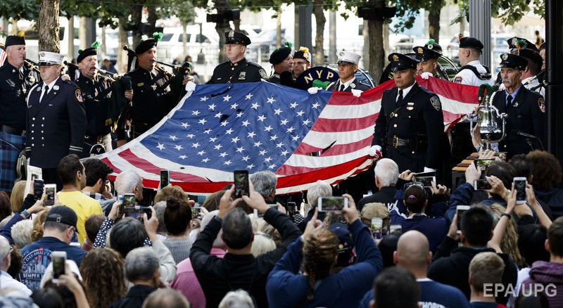 Уранці 11 вересня у Сполучених Штатах згадують жертв теракту, що стався цього дня 16 років тому, повідомляє ЕРА. У Нью-Йорку першу хвилину мовчання було оголошено о 08.46 за місцевим часом (15.46 за Києвом), коли перший із захоплених терористами літаків врізався в будівлю Всесвітнього торгового центру. Потім пам'ять загиблих ушанували о 09.03, коли другий захоплений літак врізався у ВТЦ, і о 09.37, коли третій літак упав на будівлю Пентагону у Вашингтоні. У столиці країни також пройшли жалобні заходи, у яких взяли участь президент США Дональд Трамп із дружиною і міністр оборони Джеймс Меттіс.