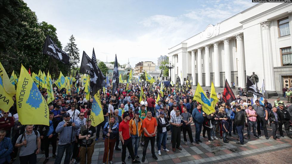 15 травня кілька сотень представників організації "Авто Євро Сила" провело акцію протесту біля будівлі Верховної Ради України і Кабінету Міністрів України, повідомляє "Радіо Свобода". Власники автомобілів із європейською реєстрацією вимагали продовжити пільговий період для розмитнення авто, скасувати акциз, відтермінувати введення штрафів і зупинити нарахування повторних штрафів за розмитнення автомобілів у розмірі 8,5 тис. грн. Пільговий період розмитнення спливає 24 травня, після чого за керування автомобілем з іноземною реєстрацією будуть штрафувати на 170 тис. грн. 25 листопада 2018 року набув чинності закон про зміну ставок акцизу для "євроблях". Протягом 90 днів від дня набуття законом чинності їх розмитнювали із застосуванням коефіцієнта 0,5. Державна фіскальна служба України повідомила, що за час дії пільгового періоду українці розмитнили понад 218 тис. автомобілів на іноземній реєстрації, до держбюджету надійшло 13,5 млрд грн.