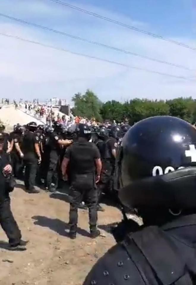 28 липня в Києві на території екопарку Осокорки сталися сутички біля будмайданчика між поліцією та активістами "Національного корпусу". Поліція затримала двох осіб. У Дарницькому райуправлінні поліції заявили, що приїхали на виклик, коли невідомі зламали паркан навколо забудови. У прес-службі поліції заявили, що силовики не застосовували газових балончиків проти протестувальників. Кореспондент AP Єфрем Лукацький заявив у Facebook, що поліцейські брешуть. "Один із поліцейських, побачивши, що я знімаю, зарядив мені газом в очі по повній програмі. Я у прямому сенсі осліп хвилин на 10", – написав він.