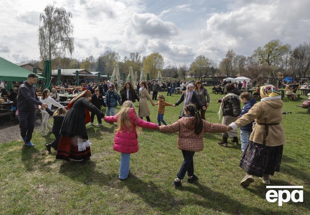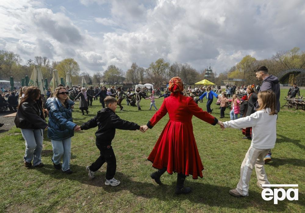 У селі Пирогів під Києвом після служби продовжували давні народні традиції – зокрема гаївки й весняні ігри.