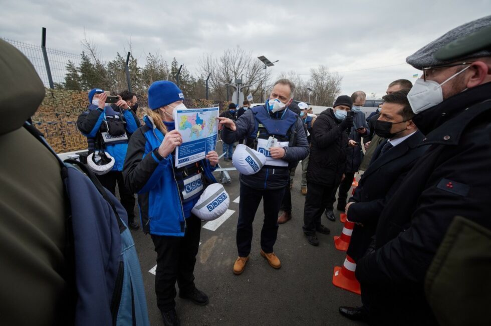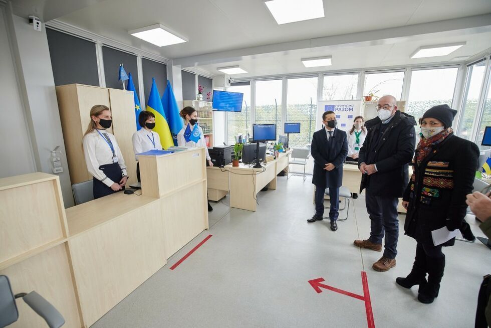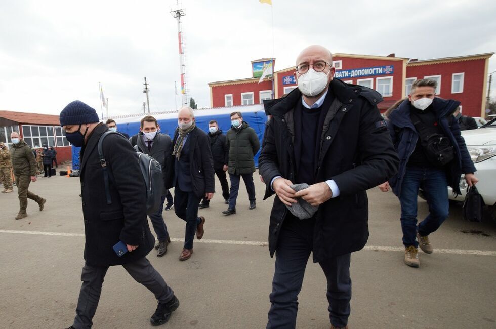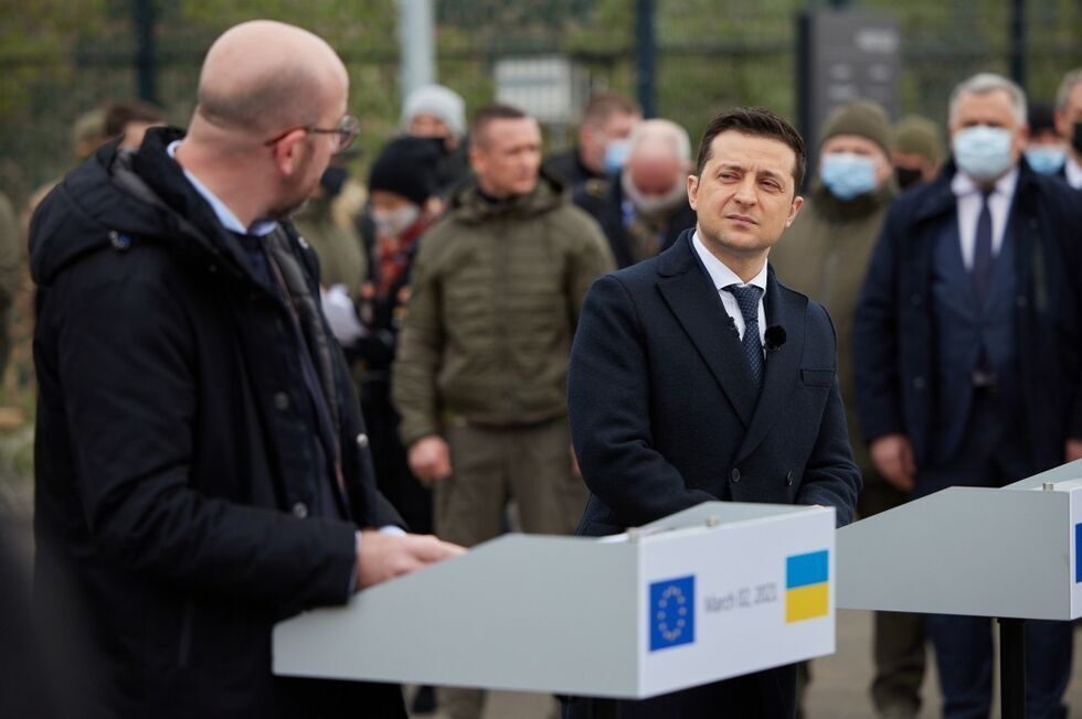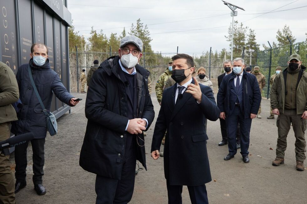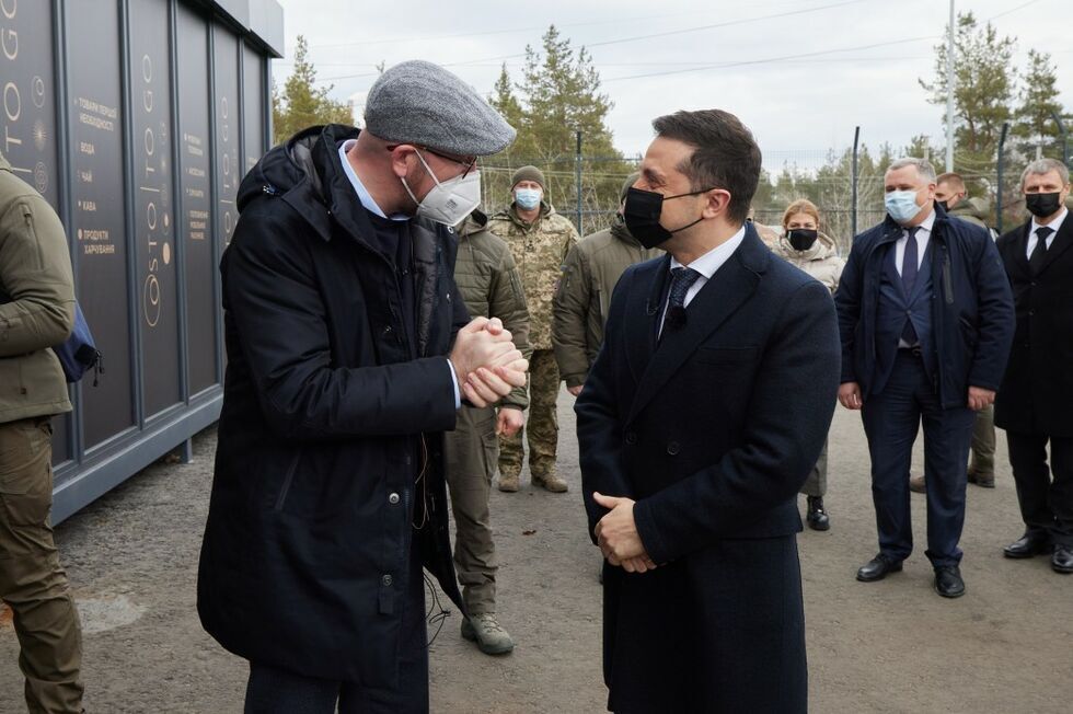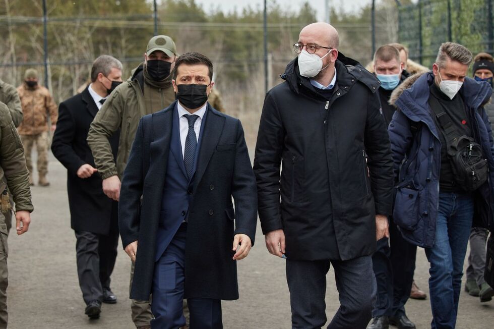 Глава Європейської ради Шарль Мішель 2 березня під час візиту в Україну відвідав контрольний пункт "Щастя" в Луганській області разом із президентом України Володимиром Зеленським. Мішель пообіцяв, що санкції проти Росії будуть діяти доти, доки не буде виконано Мінських угод, й анонсував нову програму економічного розвитку Донбасу від Євросоюзу. Після цього він написав у Twitter українською мовою: "Реальність, за яку соромно, – у 2021-му люди продовжують гинути на сході України. Слід зупинити бойові дії і дотримуватися режиму припинення вогню... Народе України, ти не наодинці, ми на твоєму боці". Під час поїздки Зеленський і Мішель оглянули мобільний центр надання адміністративних послуг, подарований у межах Програми розвитку ООН, і зустрілися із представниками міжнародних гуманітарних місій на Донбасі. Зеленський також поклав квіти до пам'ятного знака на честь військових медиків, які загинули, рятуючи життя українських військовослужбовців, і зробив щеплення проти COVID-19 разом із військовими. Фотографії з Луганської області опублікував Офіс президента.