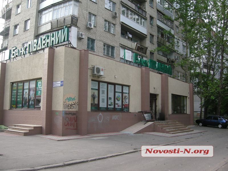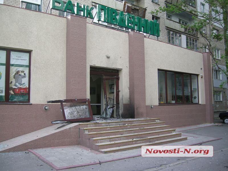 Уночі 11 травня в Миколаєві біля входу в будівлю банку "Південний" стався вибух, який пошкодив вхідні двері та вибив вікна. Про це пише місцеве видання "Новини-N". Вибух прогримів приблизно о 2.00. За попередніми даними, було підірвано безоболонковий вибуховий пристрій потужністю 200–250 г у тротиловому еквіваленті. Вибуховою хвилею вибило вікна в сусідніх будинках. На сайті обласного управління поліції в Миколаївській області поки немає інформації про інцидент.