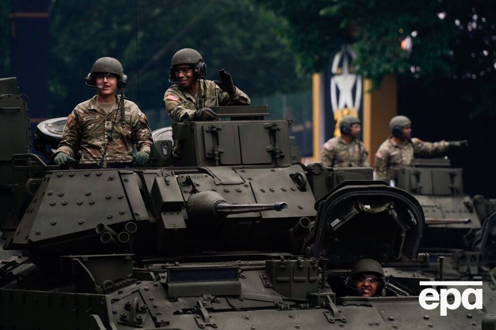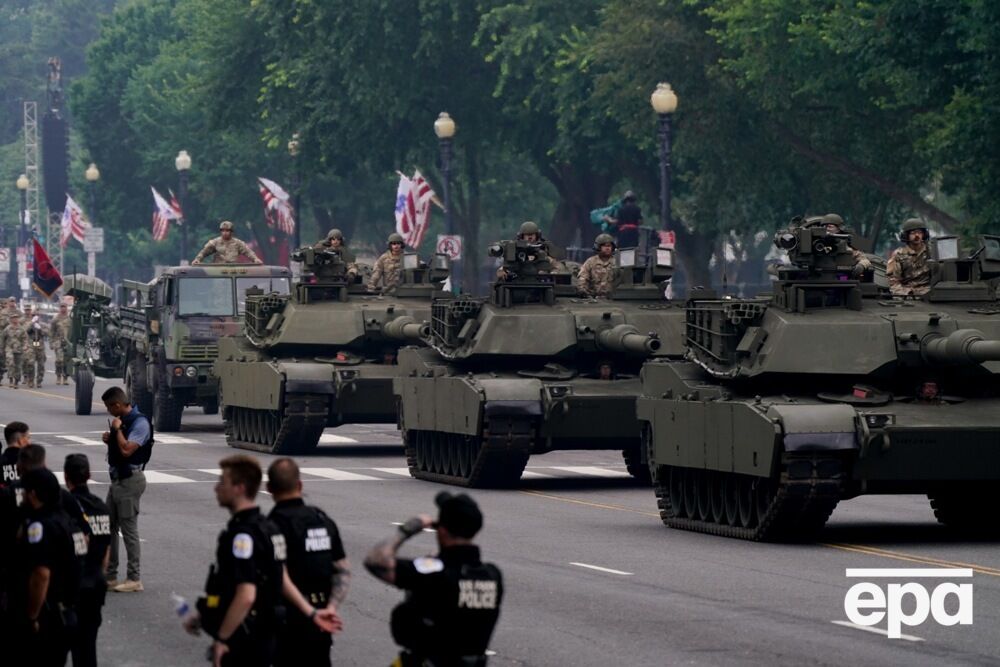 У столиці США Вашингтоні 14 червня відбувся військовий парад на честь 250-річчя американської армії. Він збігся із 79-м днем народження президента США Дональда Трампа. Президента зустрічали на його парадній трибуні з помпою, урочистістю й імпровізованим святкуванням дня народження, повідомляє CNN. Трамп прибув під салют із 21 гармати. і коли гармати вистрілили, натовп почав співати "З днем народження тебе". На параді було презентовано безліч одиниць військової техніки, зокрема десятки танків M1-A1 Abrams і бойових машин Bradley і Stryker, а також гаубиці й інші артилерійські гармати. Приблизно 7 тис. солдатів мали взяти участь у найбільшому військовому параді за останні десятиліття. Захід розповідав історію армії протягом її 250-річного існування, починаючи з війни за незалежність і проходячи через великі конфлікти. Епохи історії армії було презентовано старовинною уніформою і спорядженням.