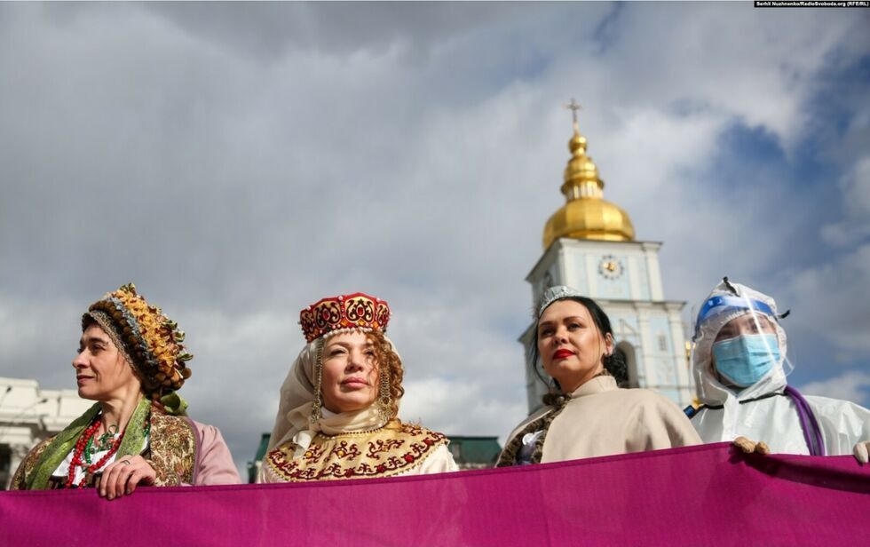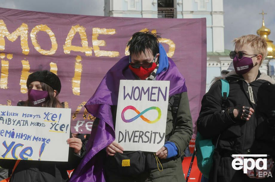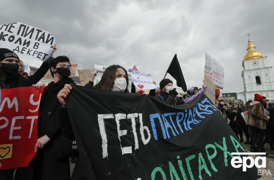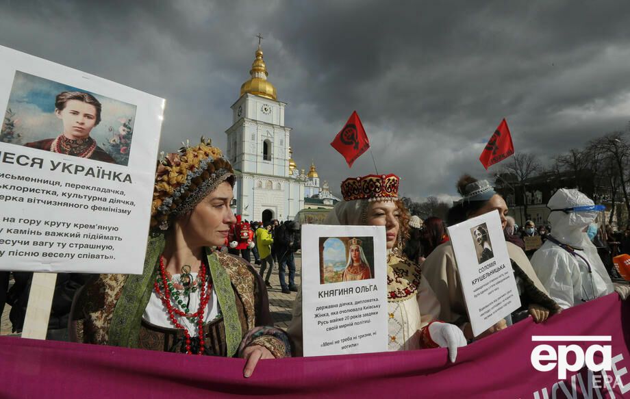 У Києві 8 березня провели марш за права жінок. Як повідомляє "Радіо Свобода", кілька тисяч учасників вирушило від Михайлівської площі центром Києва в напрямку Поштової площі у супроводі кордону правоохоронців. На акцію жінки принесли плакати з написами "Свобода, рівність, жіноча солідарність", "Права жінок – права людини", "Вари борщ сам" тощо. На початку акції на Михайлівській площі були присутні і противники заходу, учасники праворадикальної організації "Традиція і порядок", які заявили про "операцію з порятунку феміністок". Фото з місця подій публікують "Радіо Свобода" та EPA.