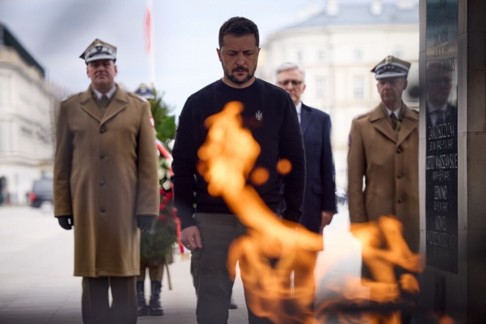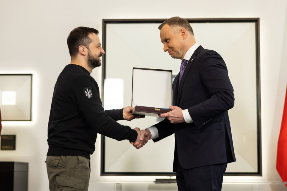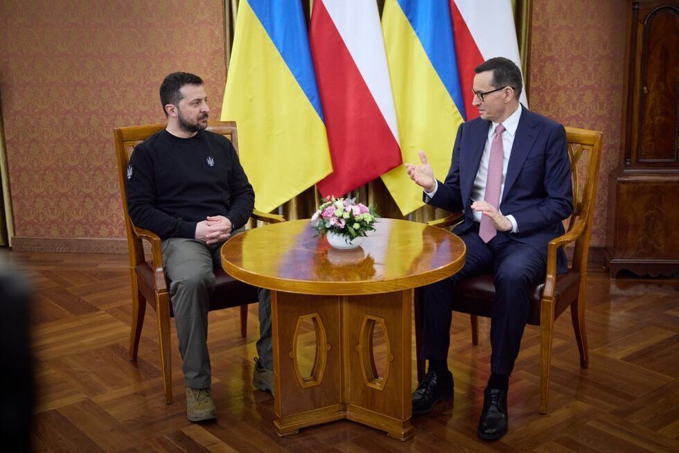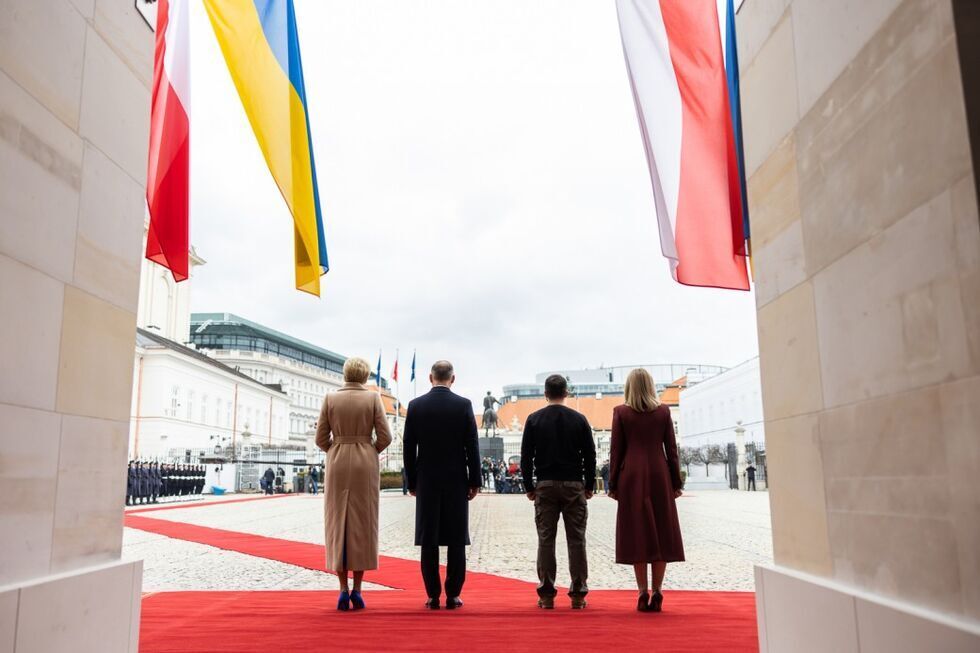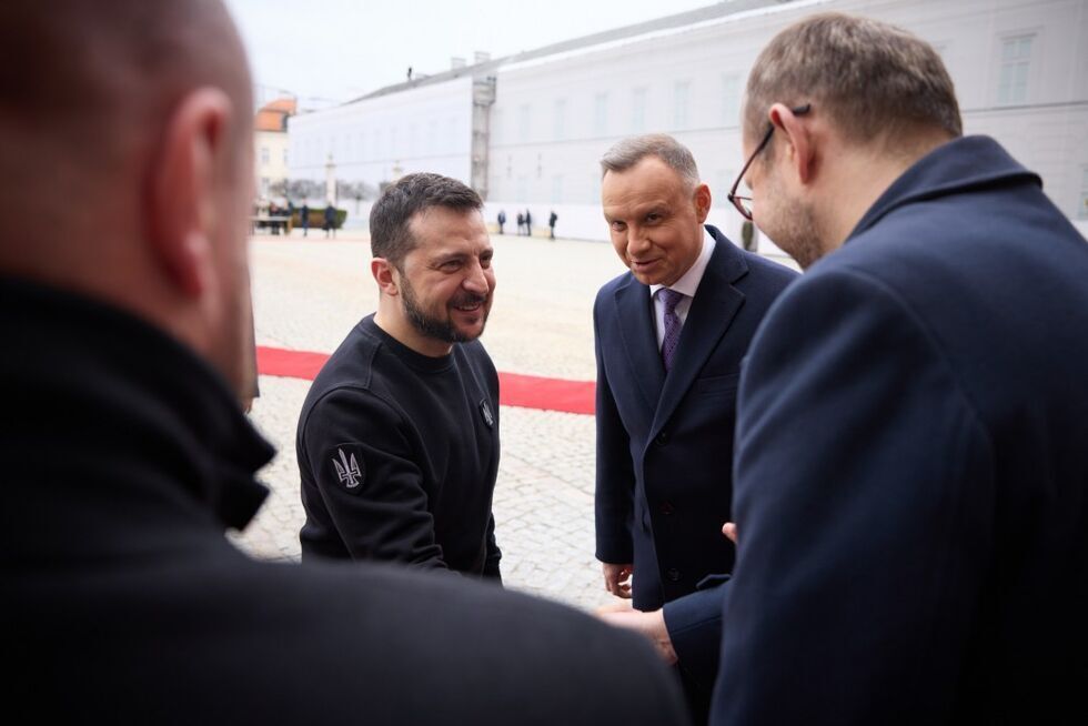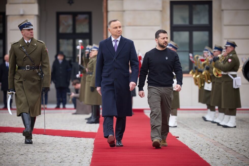 Президент України Володимир Зеленський 5 квітня здійснив офіційний візит до Польщі вперше після початку повномасштабної російської агресії, і це також перший заздалегідь оголошений виїзд президента з України. У Варшаві Зеленський зустрівся із президентом Польщі Анджеєм Дудою. Президенти домовилися про надання Україні "потужного оборонного пакету". Зеленський отримав від Дуди найвищу нагороду Польщі – орден Білого Орла. Також Зеленський зустрівся із прем'єр-міністром Польщі Матеушем Моравецьким та оглянув разом із ним зразки військової техніки, які Польща постачатиме Україні. Вони також відвідали Могилу невідомого солдата. За підсумками візиту Зеленського країни домовилися про виробництво боєприпасів для України та вирішення проблеми з імпортом до Польщі українського зерна.