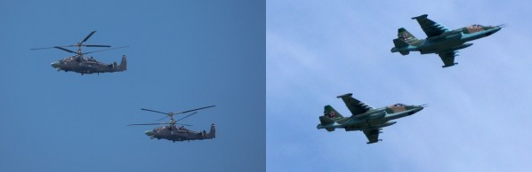 По-п'яте, путінські "лоцмани", нібито запропоновані українцям, з'явилися приблизно о 13.05 – у вигляді пари ударних вертольотів Ка-52, які зімітували повітряну атаку на українські кораблі. За вертольотами пішли штурмовики Су-25, що випустили по українських кораблях не менше ніж вісім ракет.