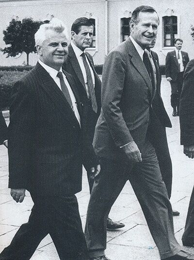 – Правильно. 1 серпня 1991 року Джордж Буш–старший із дружиною завітав до Києва, провівши перед цим три дні в Москві в резиденції Ново-Огарьово в компанії подружжя Горбачових. Виступаючи з трибуни Верховної Ради, американський президент умовляв народних депутатів не створювати жодної незалежної України, лякав "войовничим, радикальним і суїцидальним націоналізмом".