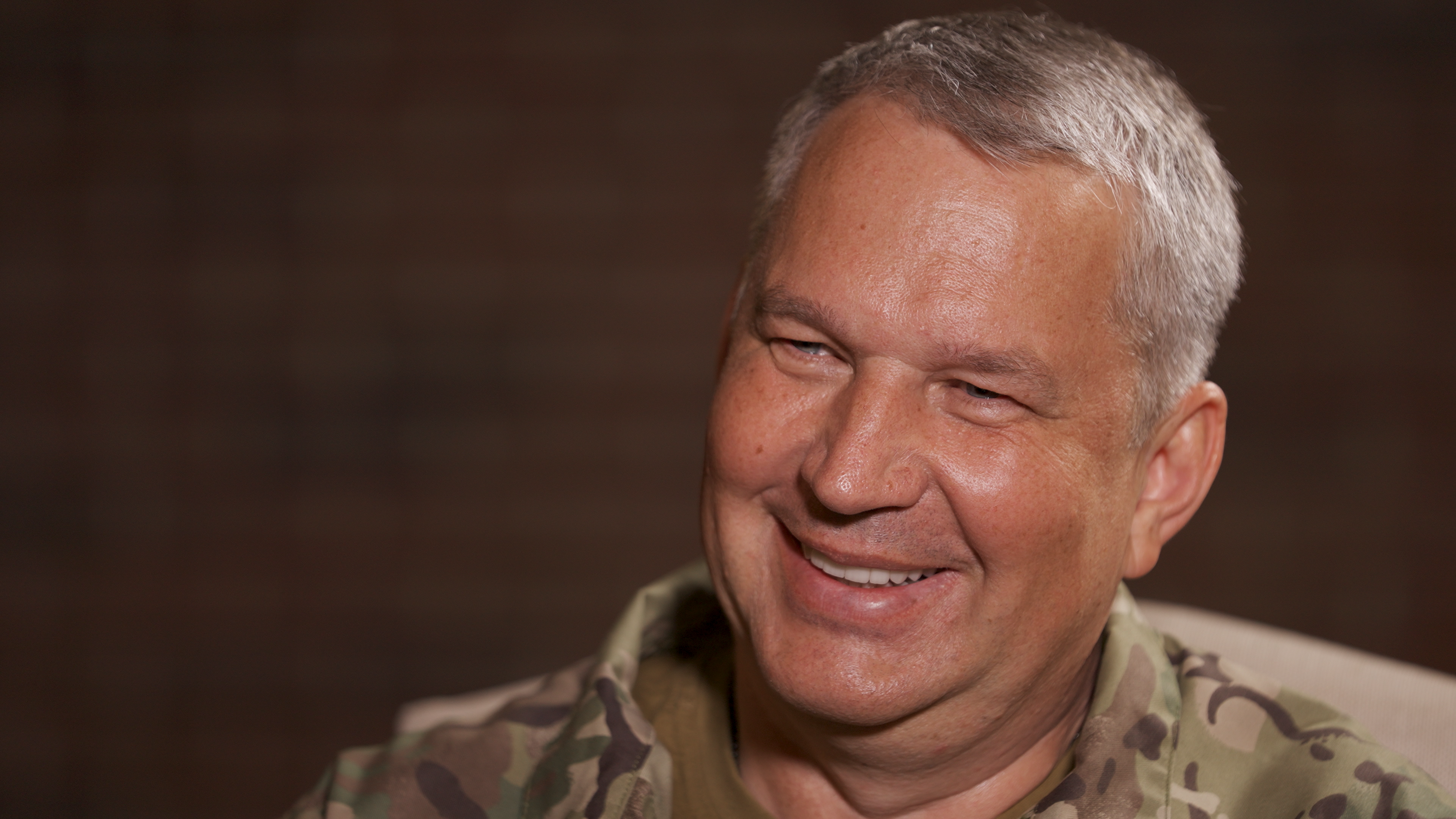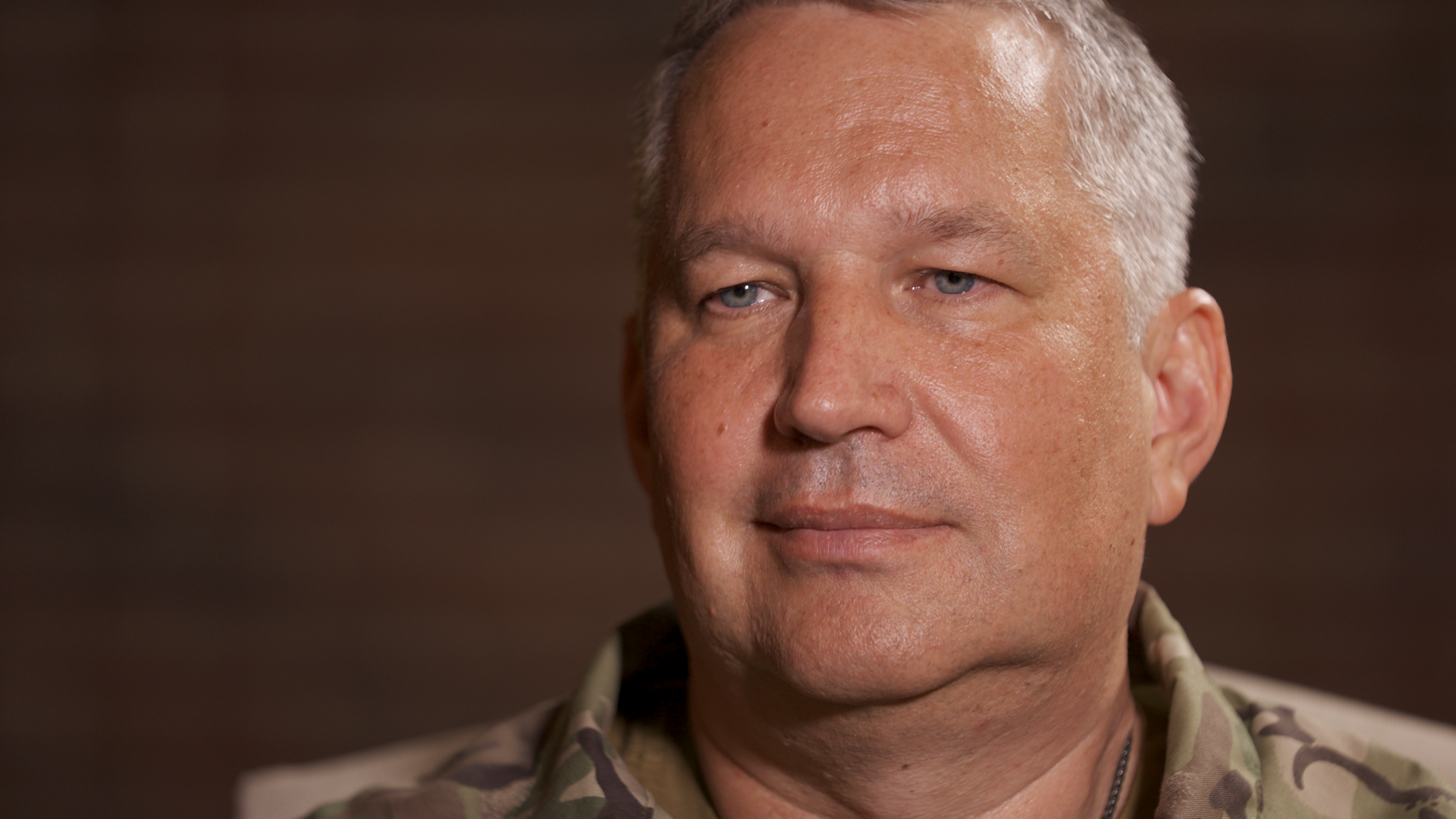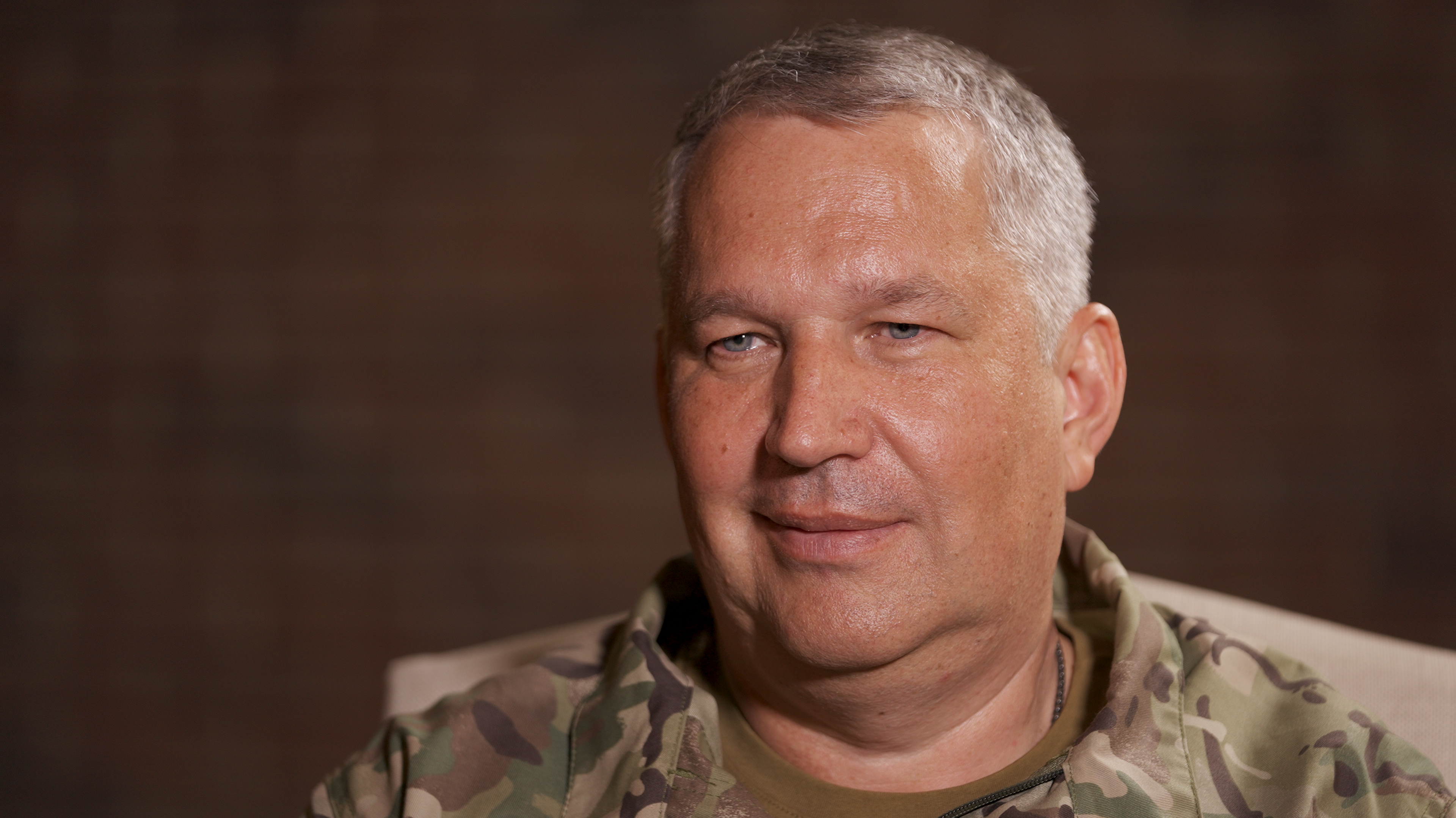 – Я зараз дивлюся на вас і ловлю себе на думці, що це приголомшлива історія. До великої війни успішний бізнесмен, мультимільйонер. Ну, живи й радій. Приходить велика війна – і переді мною сидить людина, яка очолює найпотужніший підрозділ в Україні, котрий знищив найбільше російської військової техніки. Людина, ім'я якої навіює страх на противників. Полковник, справжній герой України. Про вас навіть, я знаю, молдовські музиканти пісню написали чудову. Ви її чули?