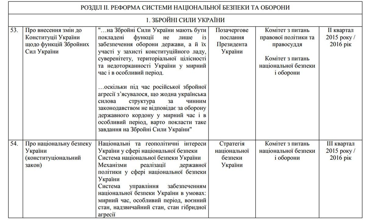 5 лютого Порошенко схвалив рішення РНБО про подання у Верховну Раду закону "Про національну безпеку України". Відповідний указ з'явився на офіційному сайті президента після зустрічі у США глави Пентагону Джеймса Меттіса та міністра оборони України Степана Полторака. Меттіс підкреслив, що очікує на ухвалення Верховною Радою закону про нацбезпеку, який дасть змогу провести реформи в українській оборонній сфері.
