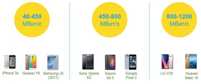 Модель телефона впливає не тільки на здатність використовувати 4G, але і на швидкість інтернету. На старих смартфонах швидкість становитиме не більше ніж 100–150 Мбіт/с, нові флагманські моделі дадуть можливість отримувати інформацію зі швидкістю понад 1000 Мбіт/с.