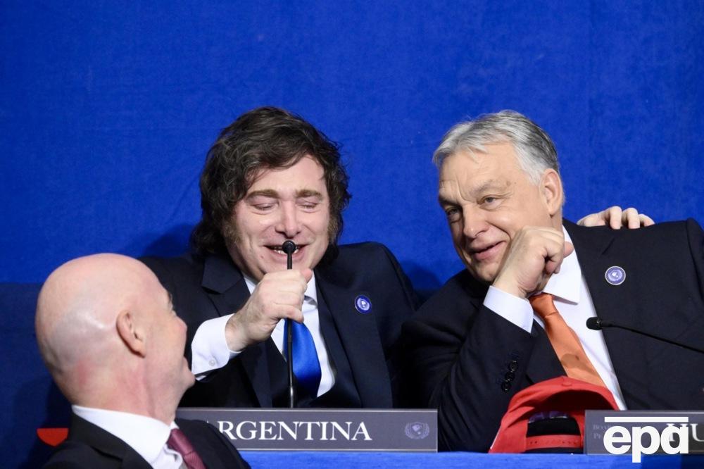 Широку реакцію в соцмережах спричинила також поведінка аргентинського президента Хав'єра Мілея і прем'єра Угорщини Віктора Орбана. На засіданні вони сиділи поруч і жартували, сміялися й поводилися досить розслаблено як для офіційного заходу. Відео оприлюднив в X Hungary Based.