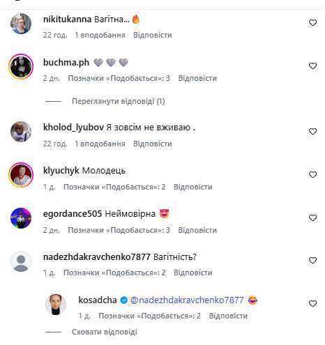 Осадчу такі запитання розсмішили до сліз – на один із таких коментарів вона відреагувала смайлом, який сміється зі сльозами на очах.