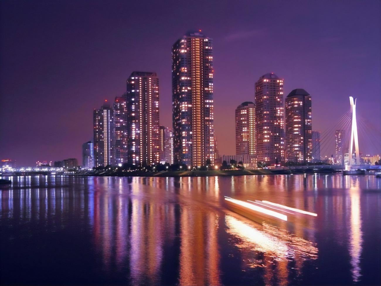 Сучасний висотний будинок розташований на набережній річки Суміда, у районі Тюо – це один із 23 спеціальних районів Токіо, розташованих у центральній частині столиці Японії. Спеціальні райони ще з 1970-х мають широкі права автономії і самоврядування, у кожному такому районі є свій мер і міська рада. Із 2000 року спеціальні райони оголошено самостійними муніципальними утвореннями, що фактично прирівняло їх до міст.