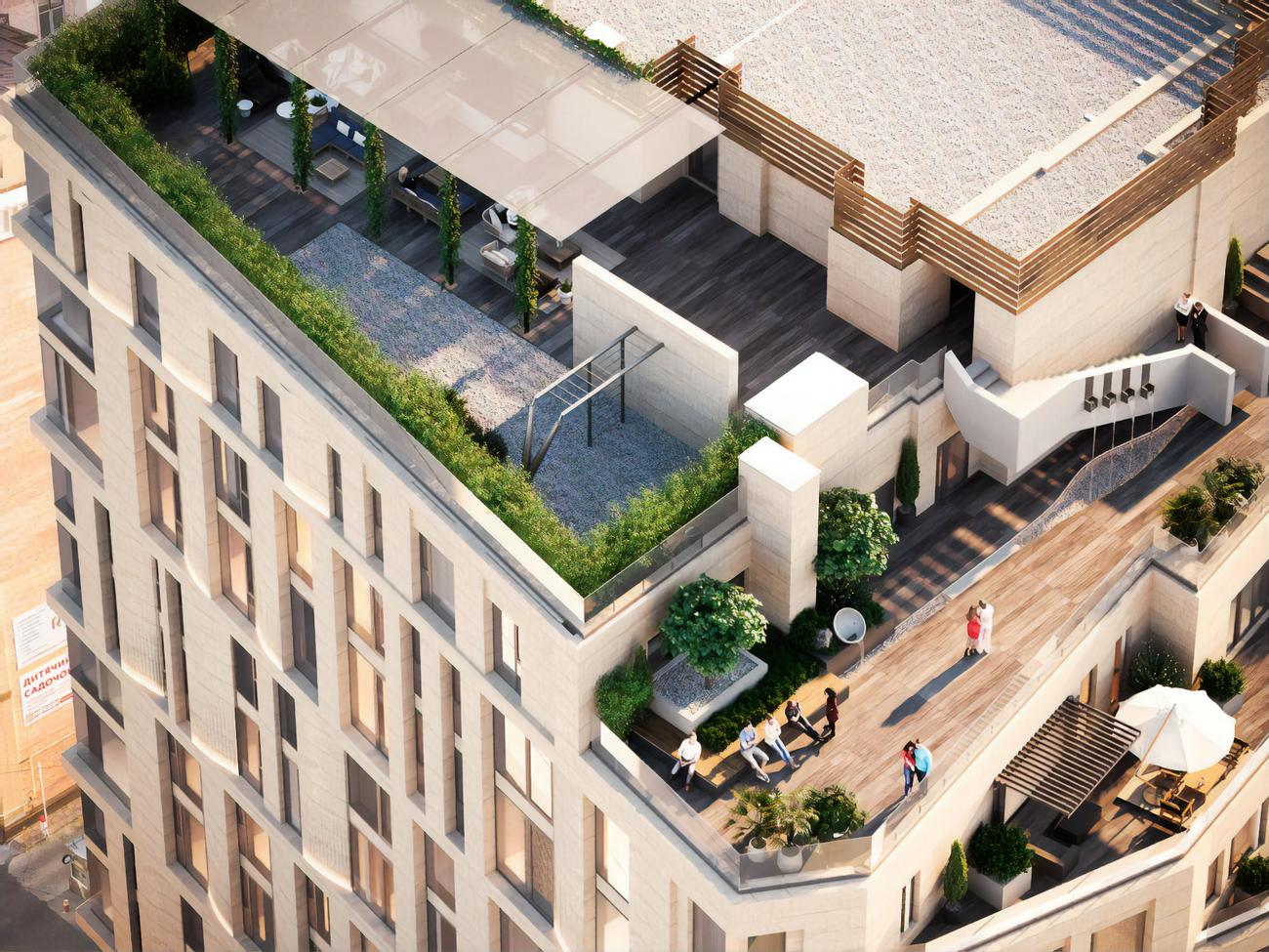 У будинку є фоє на два входи, консьєрж-сервіс, а тераса прекрасно пристосована для приватних заходів, заручин та весіль, зазначають ріелтори.