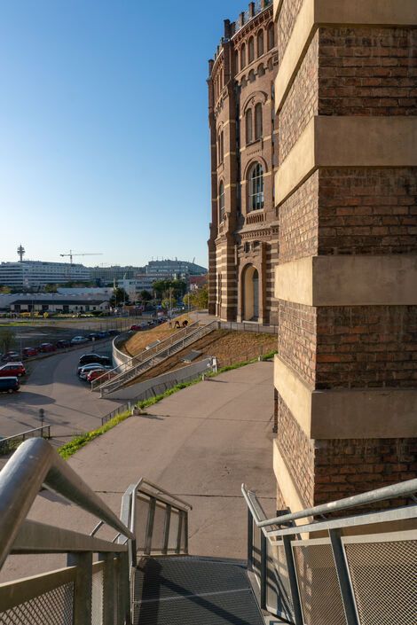1995 року четверо учасників виграли конкурс ідей із перебудови газосховища. Це було архітектурне бюро Coop Himmelb(l)au, а також архітектори Жан Нувель, Вільґельм Гольцбауер і Манфред Ведорн. У підсумку всередині колишніх газосховищ побудували житлові квартири, офіси й магазини, тоді як зовнішній вигляд – зовнішні стіни і дахи – залишився практично незайманим. 2001 року комплекс офіційно відкрили.