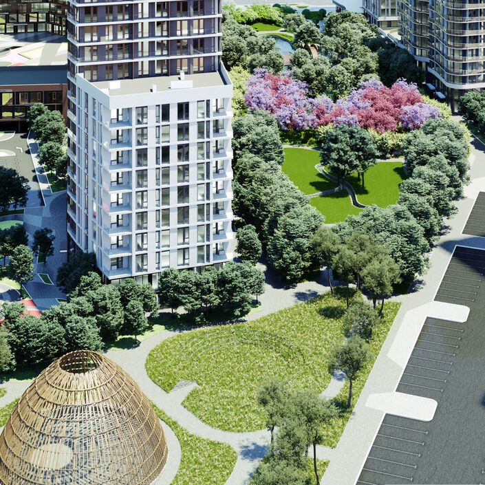 Будинки відрізнятимуться один від одного поверховістю і архітектурним різноманіттям – у кожної будівлі власний характер і стиль, об'єднані спільною концепцією. На перших поверхах розташують спортивний комплекс із басейном, супермаркет, дитячий сад, спа і салон краси, а також медичний центр.