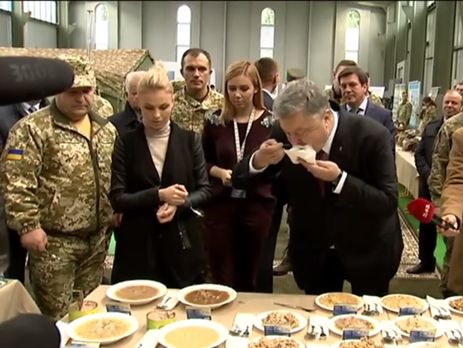 Порошенко: Борщ у новому солдатському пайку дуже смачний, майже як у Марини. Відео