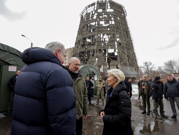 "Війна перестає бути картинкою на екрані". Шмигаль показав гостям із ЄС зруйновану ТЕЦ у Києві. Фото